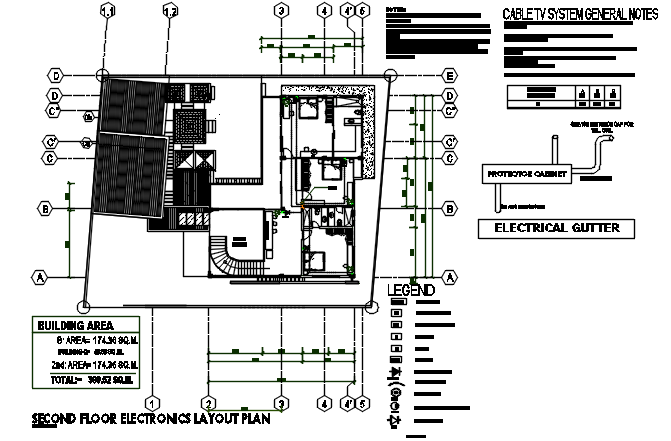 Second floor Electric plan detail dwg detail, Second floor Electric plan detail with dimension detail, naming detail, furniture detail, chair table, center line plan detail, etc.