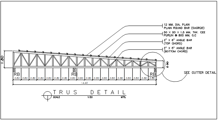 Truss detail dwg file, Truss detail with dimension detail, naming detail, reinforcement detail, 12 mm reinforcement used in truss, etc.
