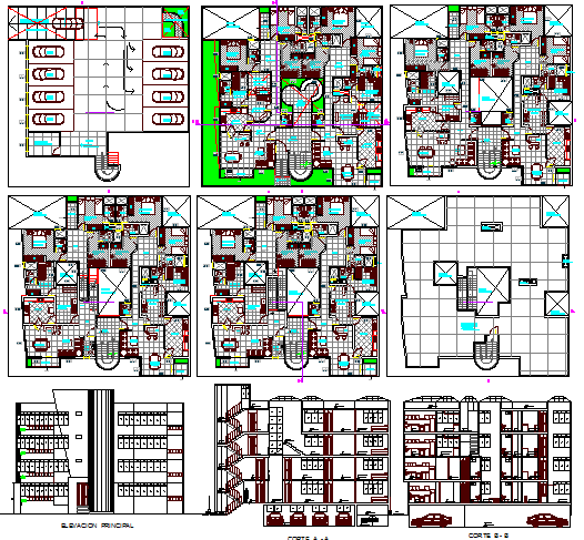 Multi-family residential apartment building architecture project dwg file