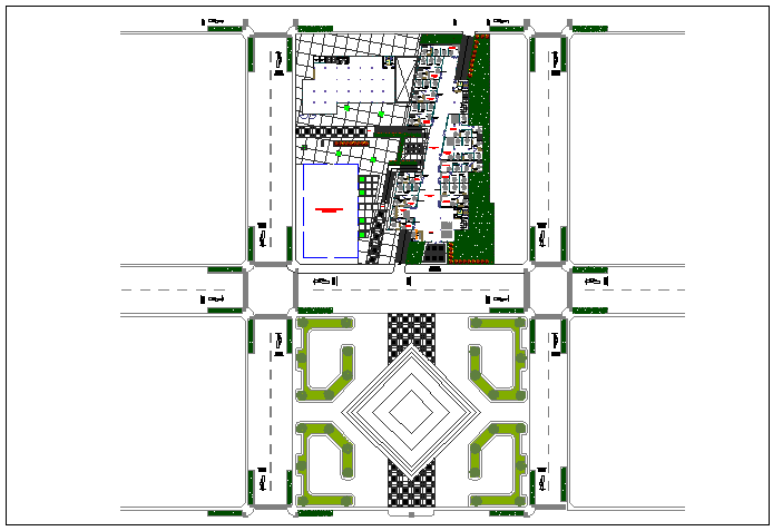 Plantation and car parking, office layout dwg file, plantation detail and floor layout plan is shown