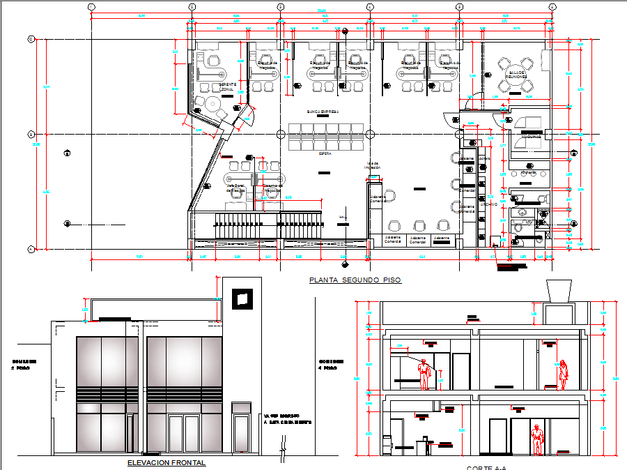 Elevation of a bank dwg file,layout plan of a office dwg file, here there is a top view layout plan of a office , modern design layout,separate cabins, sitting area,furniture detailing