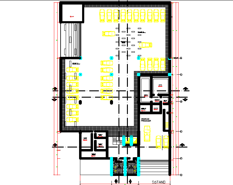 Car parking basement dwg file, this file contains car parking layout plan, spacious parking detail