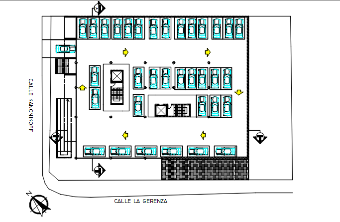 Parking area detail dwg file, Parking area detail with section line detail, car detail in parking detail, arrow side detail, etc.