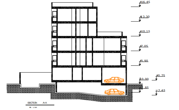 Section plan detail dwg file, Section plan detail with dimension detail, naming detail, foundation detail, door elevation detail, window elevation, etc.