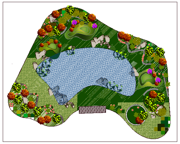 Landscaping details of city public garden that includes a detailed view of main entry gate elevation and section details, tree view, green area, decorative garden equipment like gazebo, pergola, benches, kids playing equipment, tree and plant decorative equipment, fountain and much more of theme park landscaping details.