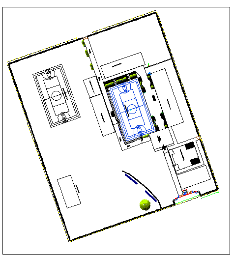 Sports ground landscaping details that includes a detailed view of tree view, landscaping view, play area, ground pitch, grass area, dressing room, toilet for staff and general, main entry gate, car parking and much more of sports ground details.