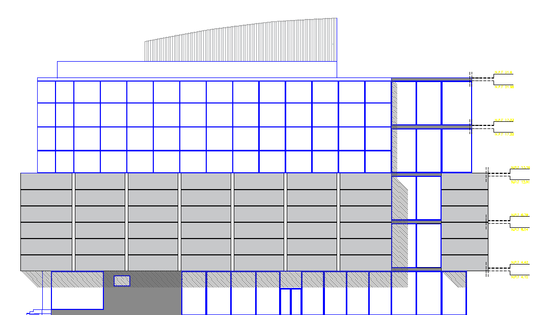 Gallery and office building elevation dwg file,elevation of a building dwg file, here there is elevation of a building, front elevation design, posh building design, corporate building structure