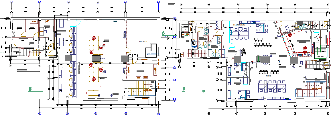 Bank agency layout plan dwg file, here there is layout plan of a bank, containing all furniture details