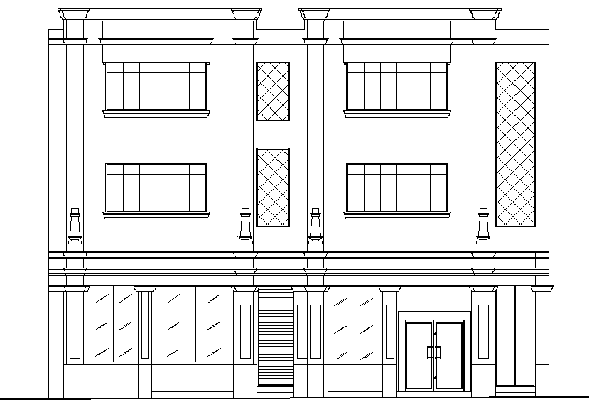 Elevation of a bank dwg file, traditional concept of a bank, tall building , elevation design in auto cad format