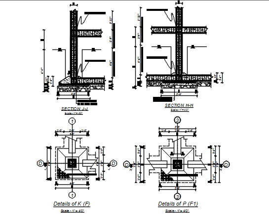 Footing detail pan and section detail dwg file, Footing detail pan and section detail with dimension detail, naming detail, detail of K and detail of P, plan in section detail plan , wall section plan detail, etc.