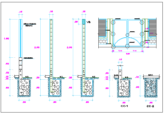 Galvanized mesh perimeter fence details of surrounding garden dwg file.
