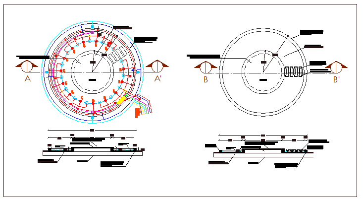 Map of water source square of fountain of garden that includes a detailed view of water diffuse, sub water lamp, perimeter concrete reinforced, transverse cut, solid concrete, polished in integrated color and much more of fountain details.