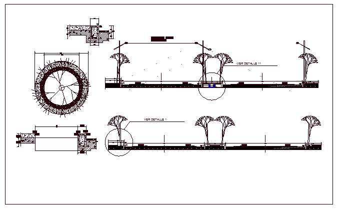 Urban center landscaping details that includes a detailed view of concrete slab stamped, assembles and collected on compact terrain, filling of inert material compacted with pending from the axle of the street, filling of inert material and much more of urban design details.