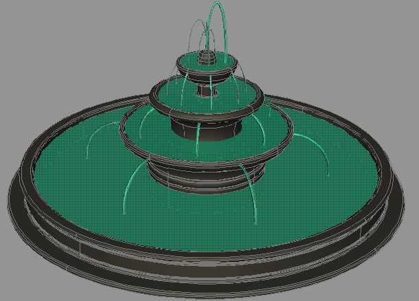 3d design of colonial style water fountain of garden that includes a detailed view of water fountain elevation view with water flow details and much more of fountain details.