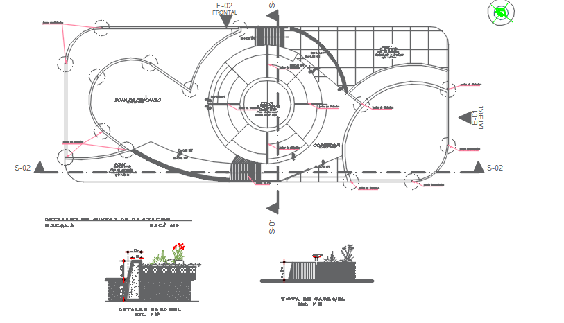 Layout plan detail dwg file, Layout plan detail with naming detail, dimension detail, tree detail in section, elevation detail, plan in section line detail, etc.