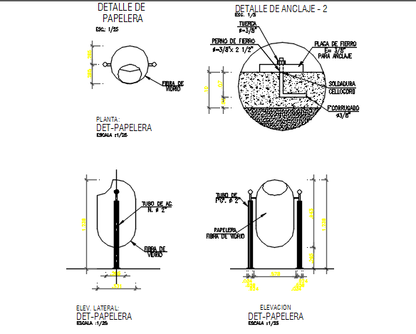 Construction detail dwg file, Construction detail with plan, elevation and section detail, dimension detail, naming detail, concret motar detail, etc.