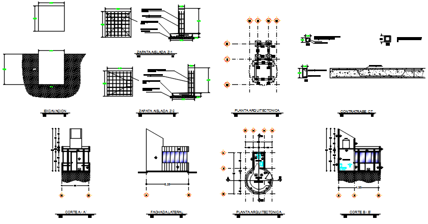Footing detail, roof detail and table detail, slab detail dwg file, Footing detail, roof detail and table detail, slab detail with dimension detail, naming detail, etc.