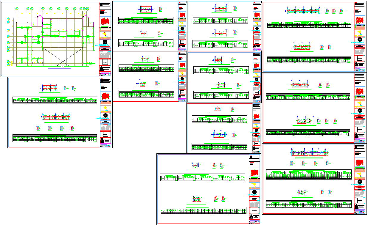 Structural Ground Beam CAD with Pile Cap Layout and Reinforcement Plan