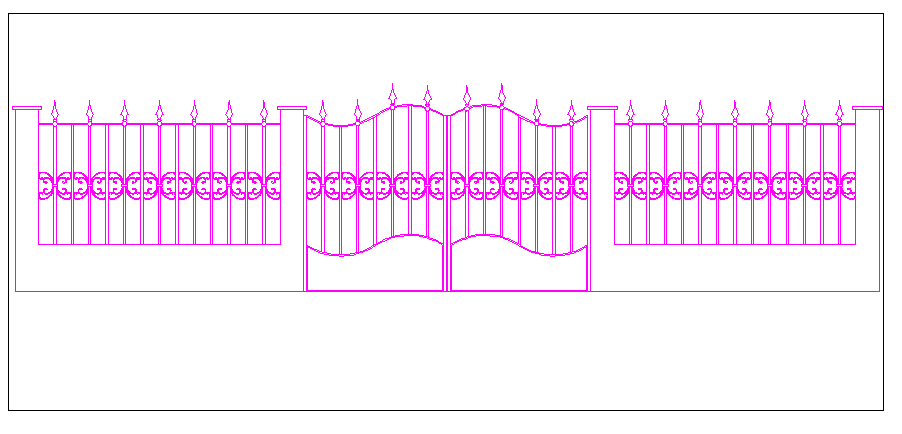 Gate and fence details of private garden that includes a detailed view of gate elevation, perimeter fence elevation, gate design, fence design and much more of fence details.