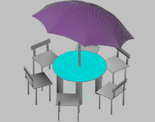Parasol with chairs and umbrella that includes a detailed view of umbrella view, chair view, circular center table view and much more of parasol design.