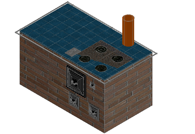 Kitchen 3D view detail dwg file, Kitchen 3D view detail with stove detail, chimney detail, kitchen flooring detail, etc.