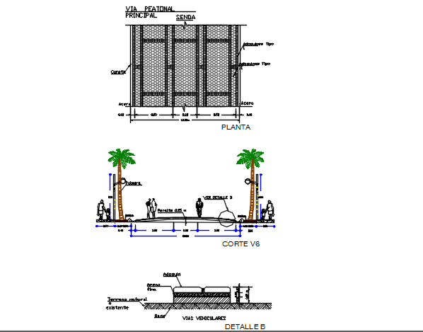 Road plan, elevation and section view detail dwg file, Road plan, elevation and section view detail with dimension detail, naming detail, both side tree elevation detail, etc.