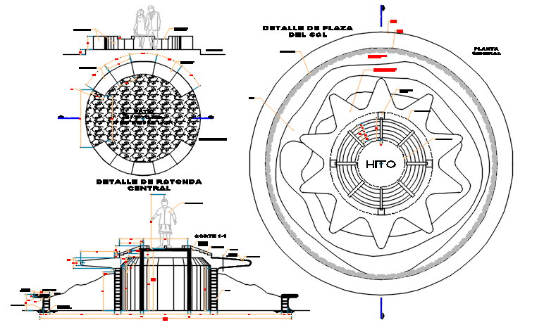 Circle shape plan, elevation and section detail dwg file, Circle shape plan, elevation and section detail with naming detail, dimension detail, etc.