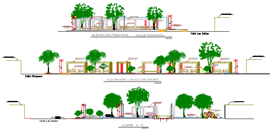 Elevation and section detail of the land sceping garden area sitting plan detail dwg file