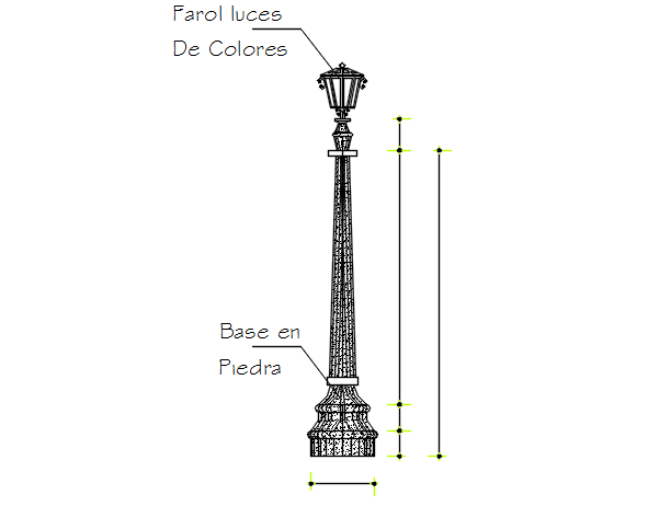 Street light detail dwg file, Street light detail with plan, elevation detail, dimension detail, naming detail, front elevation and lateral elevation detail, etc.