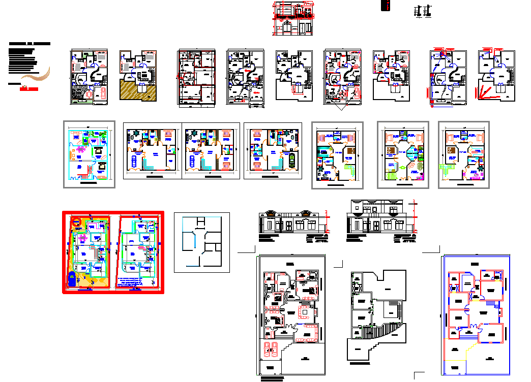 This AutoCAD DWG file provides a detailed modern house plan including 2D floor layouts, furniture placements, room arrangements, and elevation details. The design features clear divisions for bedrooms, kitchen, living area, and staircase with accurate dimensions and professional drafting. Each layout is designed to optimize usable space and maintain proper ventilation and circulation. It is suitable for single-family homes or duplex-style residences.