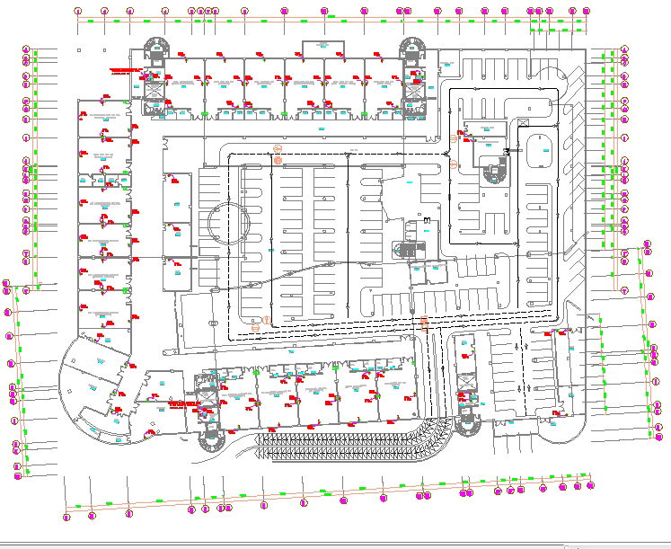 Professionals can use this CAD layout for electrical planning in mixed-use developments, ensuring safety and compliance with standard electrical codes. The layout further covers detailed parking arrangements, lighting pole distances, and underground cabling routes, helping in power load management and energy efficiency. This AutoCAD DWG is perfect for engineers and designers aiming for accuracy, clarity, and smooth project implementation.