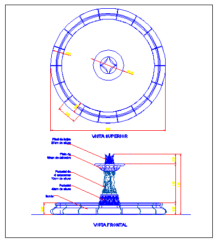 Fountain front elevation and section details dwg file