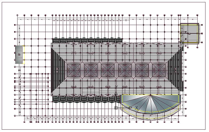 Region shopping mall architecture project that includes a detailed view of main entry gate, back side exit gate, front decorative roof with dome, wall design, structure details and much more of mall details.