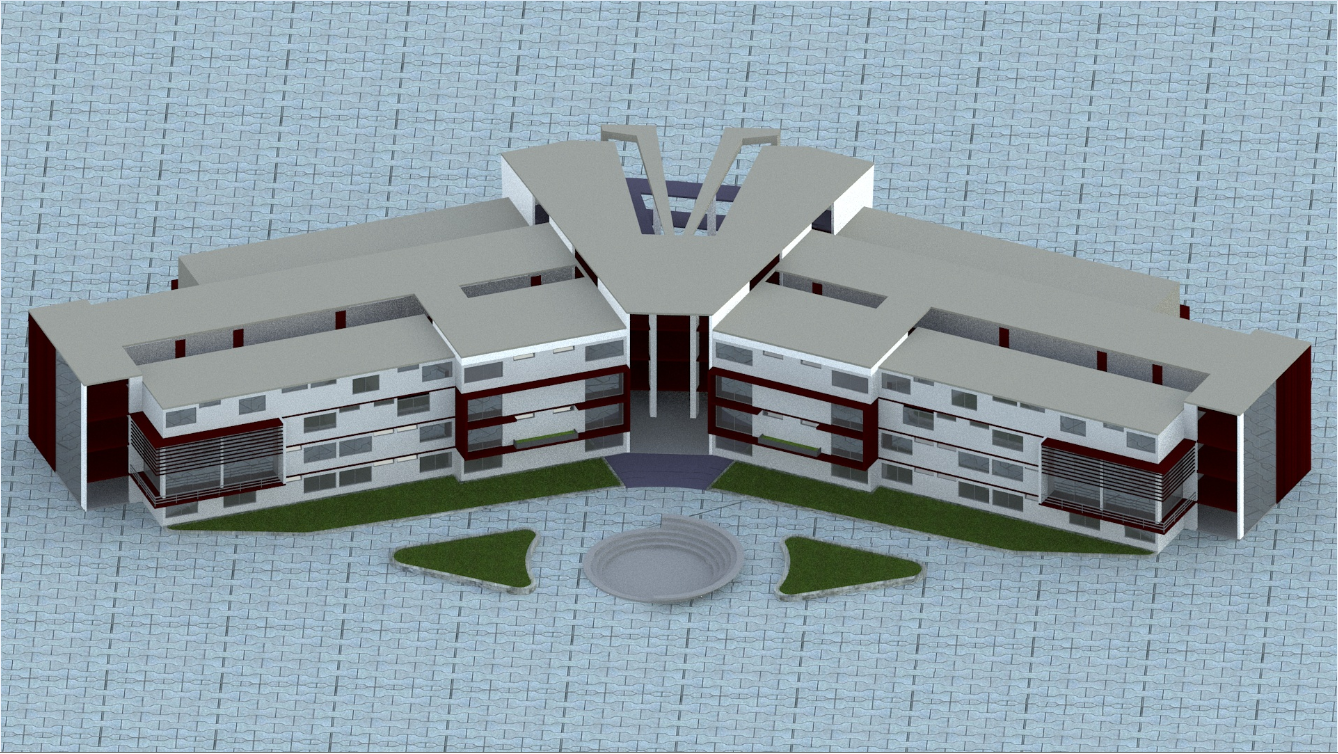 University residence elevation dwg file, this file contains 3d elevation of a university, 3d concept, material used in shown, spacious campus