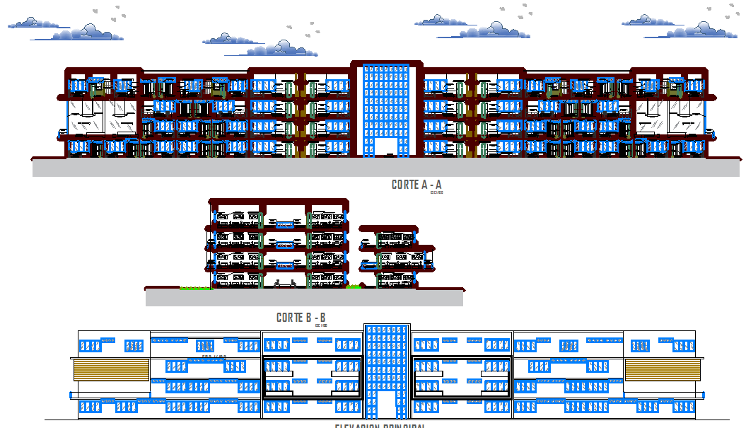 Elevation of a university building dwg file