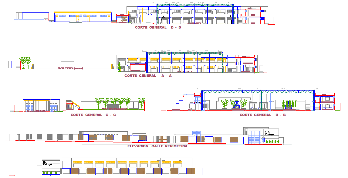 Elevation of Education institution dwg file, this file contains elevation detail of a university, big campus detail