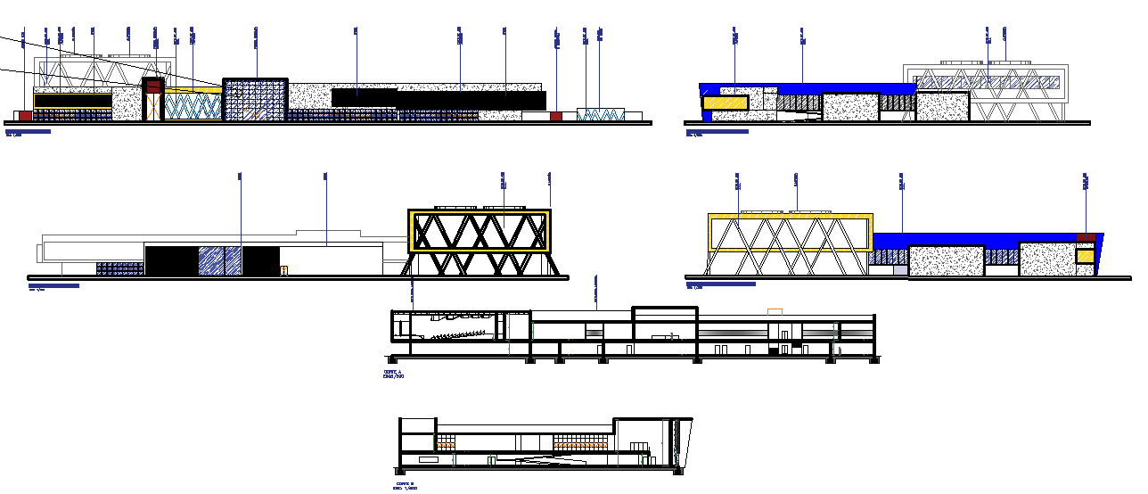 Elevation of school dwg file, this file contains elevation detail of a university, big campus detail