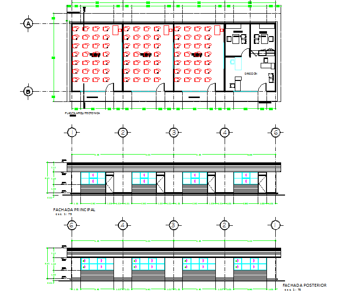 Classroom module layout plan dwg file, seating plan of a classroom, table and chairs ,staff room detail, gardening area