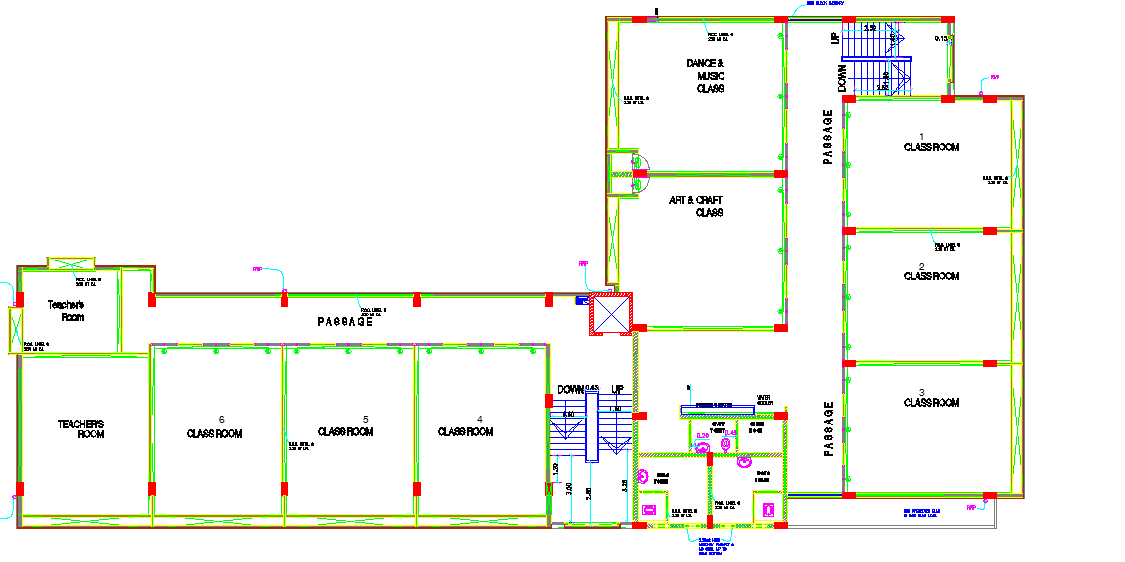 Complete layout of a school dwg file, all classroom detail, passage, rooms etc is shown