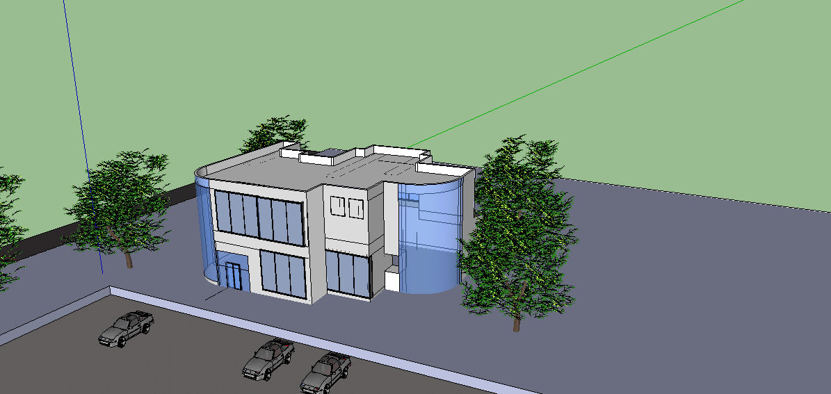 Complete elevation detail of building dwg file, car parking place is shown, landscape detail, and top view of building is also shown in auto cad format