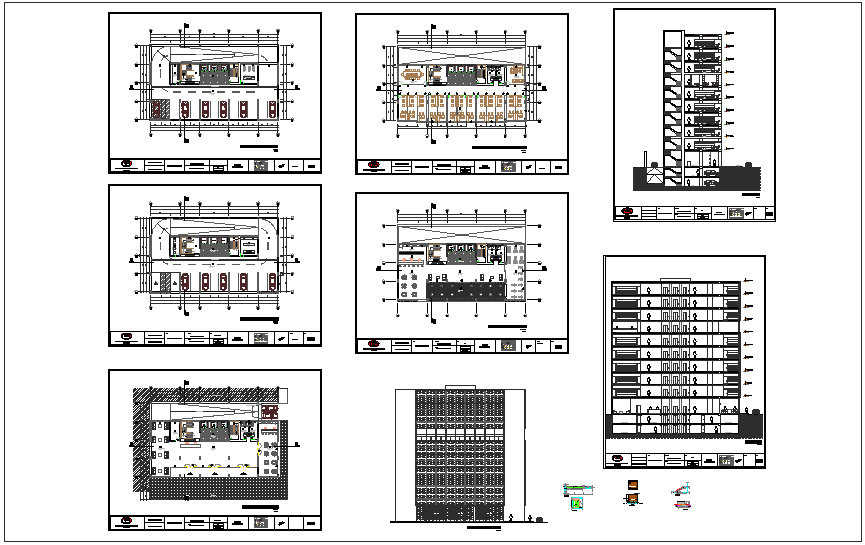 Office building floor plan,elevation and section view dwg file in floor plan with view of