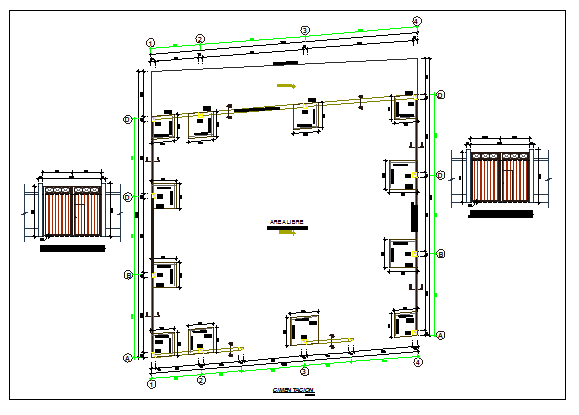 Square perimeter fence details of garden with gate elevation dwg file