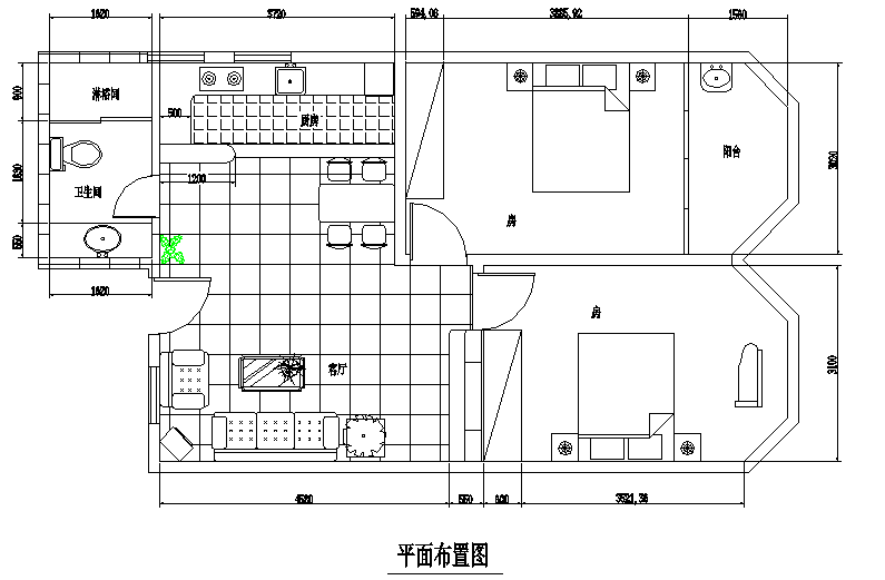 Simple House Interior Lay-out Design. Bed Room, Kitchen, 2- Bathroom , Dining Area, Drawing Room, etc Detail in cad file.