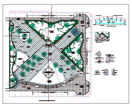 Pereirariver restoration public park landscaping details that includes a detailed view of main gate elevation, back elevation, tree view, perimeter fence, parking view, pedestrian side walk, green area, fountain, wooden banks, decorative garden equipment, children play ground equipment, pergola, gazebo, view point and much more of park landscaping details.