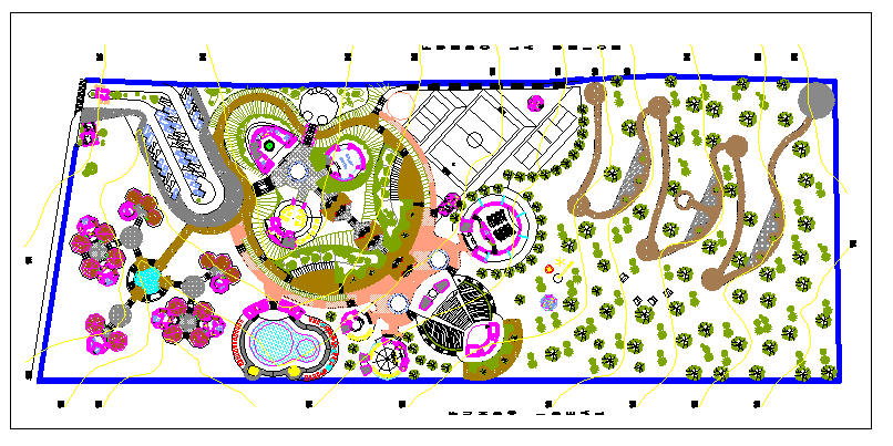 Recreational center theme park landscaping details dwg file