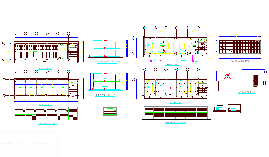 School architectural plan with sanitary and electrical view with its legend and elevation and section view dwg file
