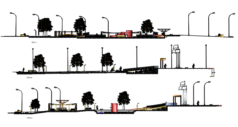 Sitting area detail dwg file, Sitting area detail with both side tree detail, stair detail, river near, dimension detail, naming detail, etc.