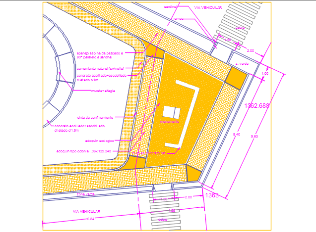 Road pavement plan section detail dwg file, Road pavement plan section detail with dimension detail, naming detail, centre line plan detail, square shape detail, radius dimension detail, etc.