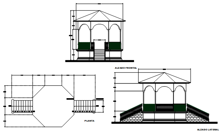 Architectural cahtri plan and elevation having capacity of seating 5 to 6 person dwg file, Architectural cahtri plan and elevation having capacity of seating 5 to 6 persona nice viewing lights on two sides, a chair is placing outside chatri, etc.