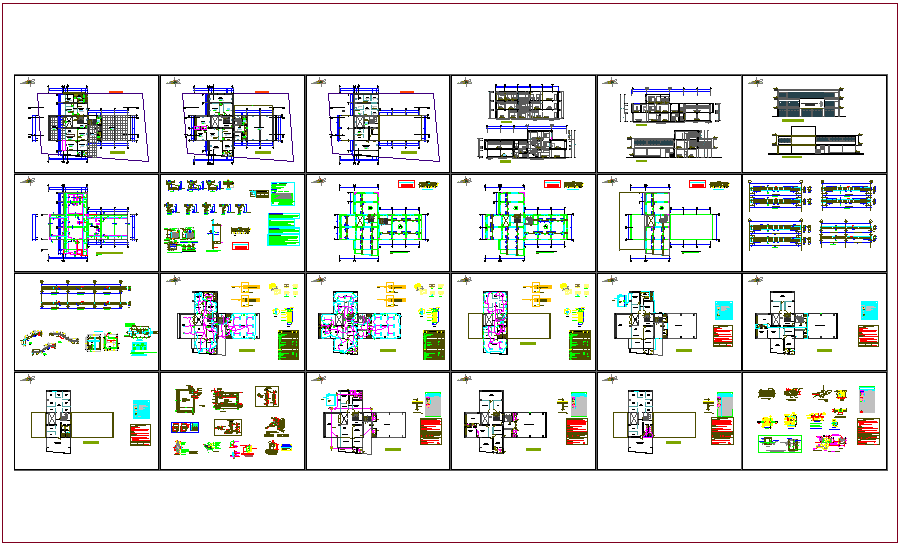 Admin building floor plan with architectural,electrical,hydraulic,sanitary and construction view with elevation and section view dwg file
